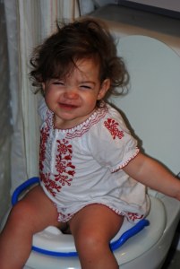 I put her in training pants that have a cooling sensation if she pees in them. Of course, she did pee in them. When she did, she stopped, looked down at her diaper and looked back at me saying “Whoooooaaa.” It made me laugh 😀