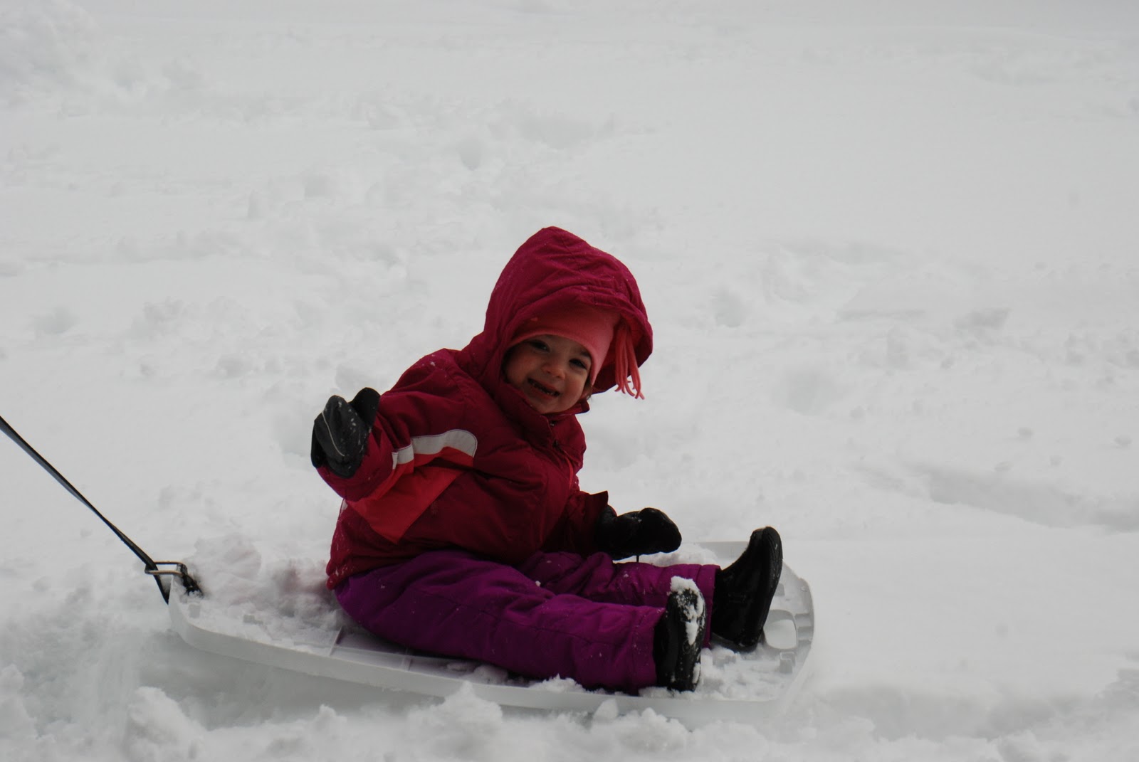 On our only snow day I took Livi out on a “poor man’s sled” (a storage lid and an old belt!)