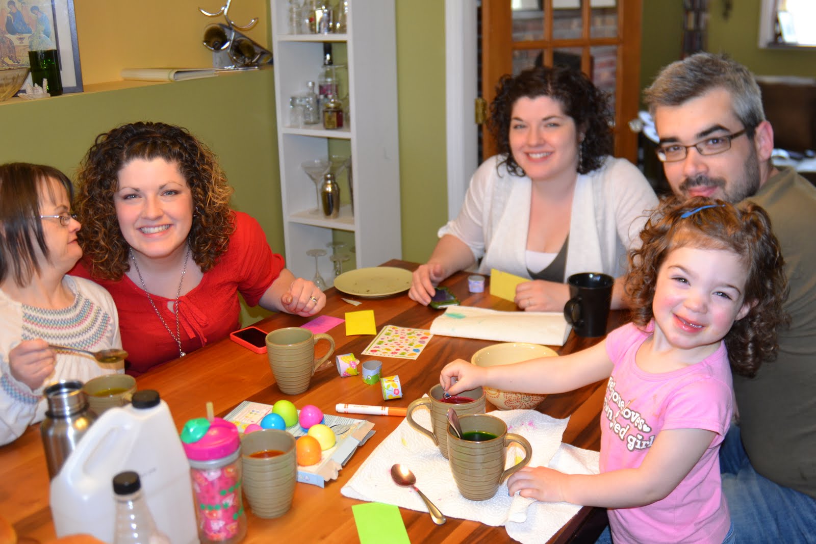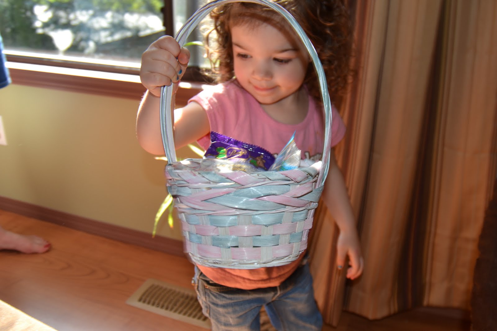 Good Friday was my baking day. I made a double batches of dinner crepe batter, dessert crepe batter and paska, plus a triple batch of cream cheese paska spread… a favorite for everyone 🙂 My side of the family decorated eggs and had a delicious dinner of crepes. Ham, broccoli and cheese crepes for dinner, fruit crepes and whip cream for dessert. Livi had a horrible fever all day, up to 101! She was my little angel though and was healthy by the next morning. Even with a fever she had a fun little Easter basket hunt and her Marmie and Oma gave her some really cute books to read and trace in. Her writing is really taking off!
