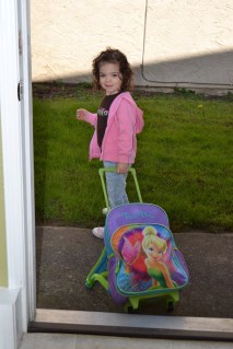 Saturday, Jon and I went to a cousins wedding. Livi went for a sleepover to her Gramma’s. She doesn’t see her very often and Livi was SO EXCITED to go for a sleepover. We even bought her a little Tinkerbell suitcase of her own. She was outgrowing the diaper bag we had been using. Sunday we picked Livi up and had breakfast at Denny’s with Jon’s mom. Livi and I then joined my mom at her church. My views on that will be on another post. We got a long nap in the afternoon and even made it out to our own church!