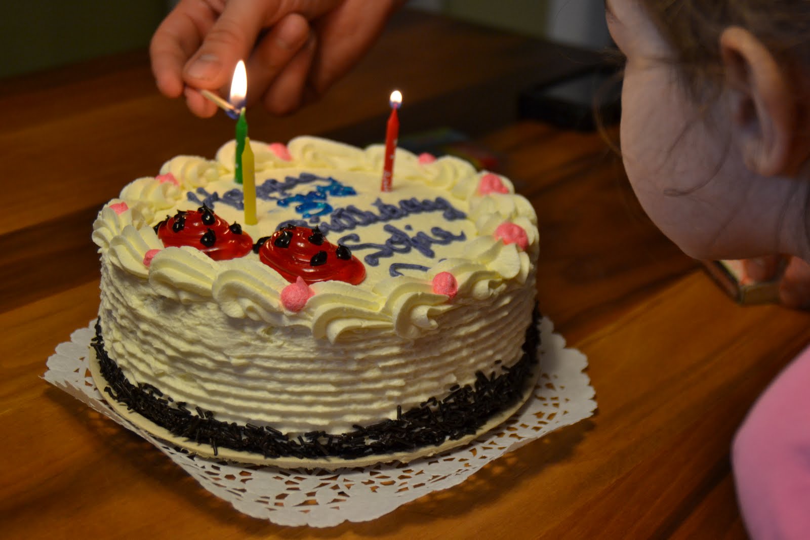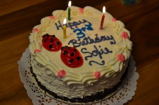 We decided we wanted to have a little family party for Sofie even though she isn’t here yet. We ordered a cake and invited Maggy and my Mom downstairs to blow out candles 🙂 We chose a lady bug cake because of the book My Sister, Alicia May. I’ve written about it before. It is about two sisters, one of which has DS. I read it quite often to Livi. In it, there is a page about Alicia May counting the “lady dots” and her big sister says “I think God is glad someone notices these things.” Livi always counts the lady bugs that cover the insides of the covers, so I think it is just a little cute thing that I’m going to keep as a theme for my two girls.