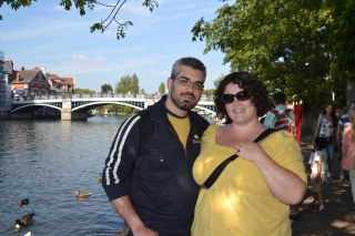 The bus took about 30 min to get to Windsor and was quite a pretty drive. I couldn’t get enough of all the brick houses, town homes and bridges. It was like I was in a movie… Well, I’ve only seen them in the movies 🙂 Unfortunately, when we got to the castle it had just closed. Apparently, everything touristy closes early in England on a Saturday. It was the same problem we had run in to when I was looking in to going to Westminster Abbey during the layover. There was still tons of stuff to look at and do… Like the Thames river! Famous in lots of literature and where we were you could frequently see the Eton boys sculling. There is a large touristy shopping area there with cute shops and yummy looking food. We went to the King and the Castle Pub (I think that’s what it was called). It was a beautiful old building with real wood, broken stone, a tree in the middle of it’s patio and hanging flower baskets everywhere. Jon got his mandatory pint of Guiness and I had the deliciously cliched Fish n’ Chips! (Thanks Leanna and David!)