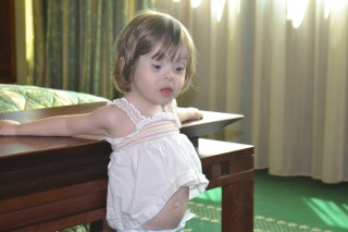 We are already learning a lot about Sofie. She is so calm and quiet. She generally only cries when she eats. This is looking like it is going to be our biggest hurdle. She clenches, grinds and clicks her teeth and jaw continuously but doesn’t really chew food. I think she is really delayed orally. We have only heard her say “ahhhh’s” so far too. I don’t think they let her put things in her mouth to stimulate her oral development so we’ve been playing at it a little today… not with huge success. The only thing she has really let me get in there is my finger once or twice. She doesn’t like eating. They basically had to force feed her at the orphanage, from what we could see, and she cried on and off through out it. I don’t like this approach but she is so skinny, I know she needs to eat. We brought some formula with us but she won’t take the bottle yet, and drinking anything from a cup is hit or miss for her. We are going to try and find a suitable sippy cup. She can’t use a straw yet either… we tried. I think the plan of action, until we can talk to some professionals back home, is to try give her 5 smaller meals instead of the three she is used to so she can continually have something in her stomach. Any advice with this is appreciated! I never had this problem with Livi!