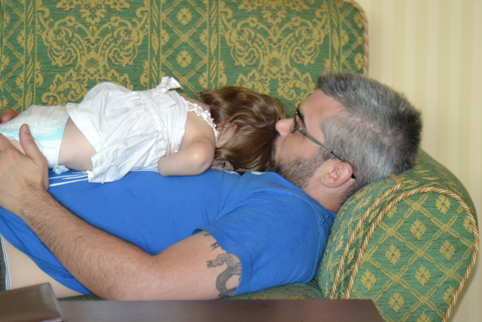 Sofie was so tired by the end of everything, but despite it all she wouldn’t fall asleep in our bed. We got a king bed so we could co-sleep while we were here. She was tired, still, and kept yawning, but 40 minutes in to Jon and I each taking turns lying down with her she was still awake. I decided to try and put her in my sling again, since she has been enjoying it so much. 10 minutes of me swaying her in my sling, she was out. I loved that. I’m not sure I want this to be a continual thing for the next year or anything, but I’m totally willing to do that each night for a few months 🙂 Just look at the results…