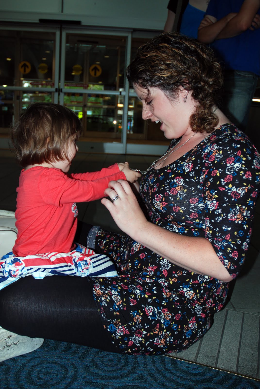 Livi was fascinated with her “sister Sofie”. It was so precious. She wasn’t sure if she could touch her or not… I think she just wanted to feel if she was real and give her hugs and kisses. Sofie was a little overwhelmed but took it in stride as usual! We sat in the arrival for a few minutes while everyone took a ton of pictures and got their chance to say hi. The car ride home was long but I think I fell asleep so it passed by quickly. Sofie fell asleep, finally around 9pm in the car too. That’s right, she slept for two hours in twenty three!