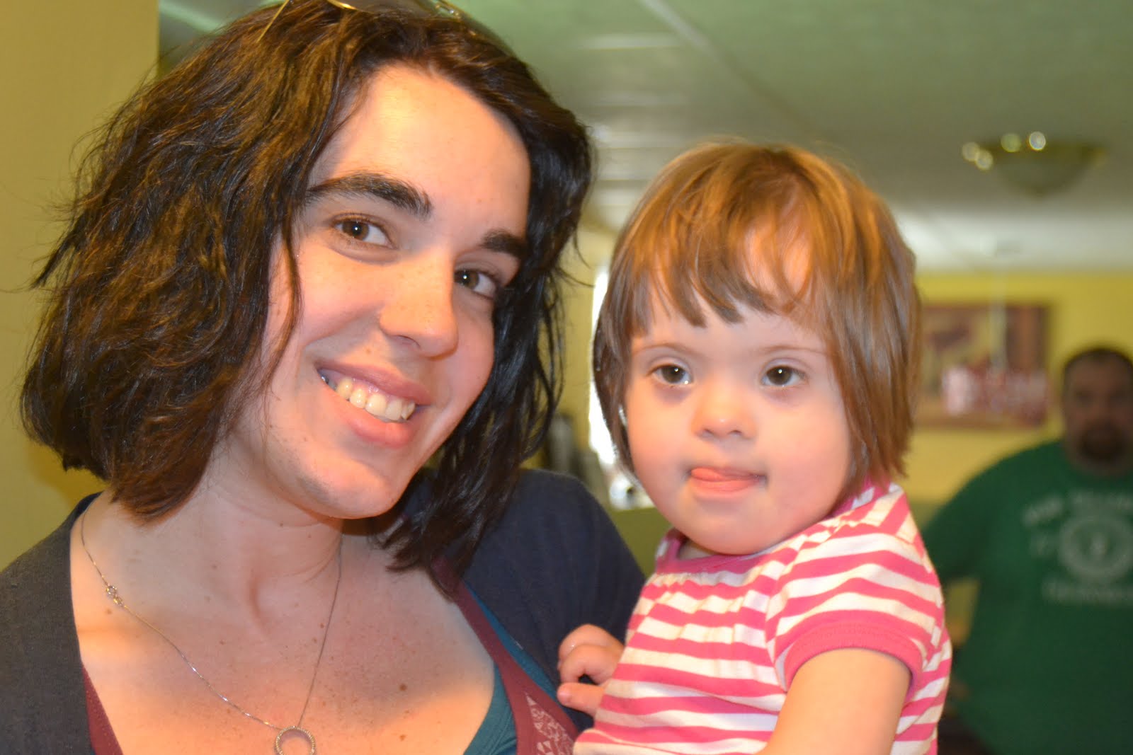 Every once in a while people picking her up does make me stop and wonder if it is too soon, but I remind myself that she is three years old. A three year old wants people to play with her. We are still very diligent in being the ones to comfort her and respond when she is fussing but it is okay that she plays with other people, I think. She may have regressed a little in the food area but she has made leaps and bounds in the past few days. Yesterday she packed away more food than I ever thought she could. Her stomach was hard and protruding! Today she ate “real” rice and pesto salmon! Not pureed! I could cry I am so proud! Plus she ate it off my fork! A big fork that poked her tongue and everything! This is seriously a big milestone people 🙂