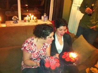 6. Friday was my sisters’ 25th birthdays. We went for dinner and back to Vanessa’s place for some cupcakes that I made and drinks. It was a lot of fun! It was the first time we’d left the girls since bringing Sofie home. Jon skipped the dinner to put Sofie to bed so she wouldn’t realize that we weren’t there. We failed to realize that this was also the first time we were leaving Livi since being gone to Bulgaria for two weeks. She had a total meltdown before Jon left. I felt so bad. She was completely settled down before he left though. Marmee, who was babysitting, let her watch the Wiggles way past her bed time 🙂