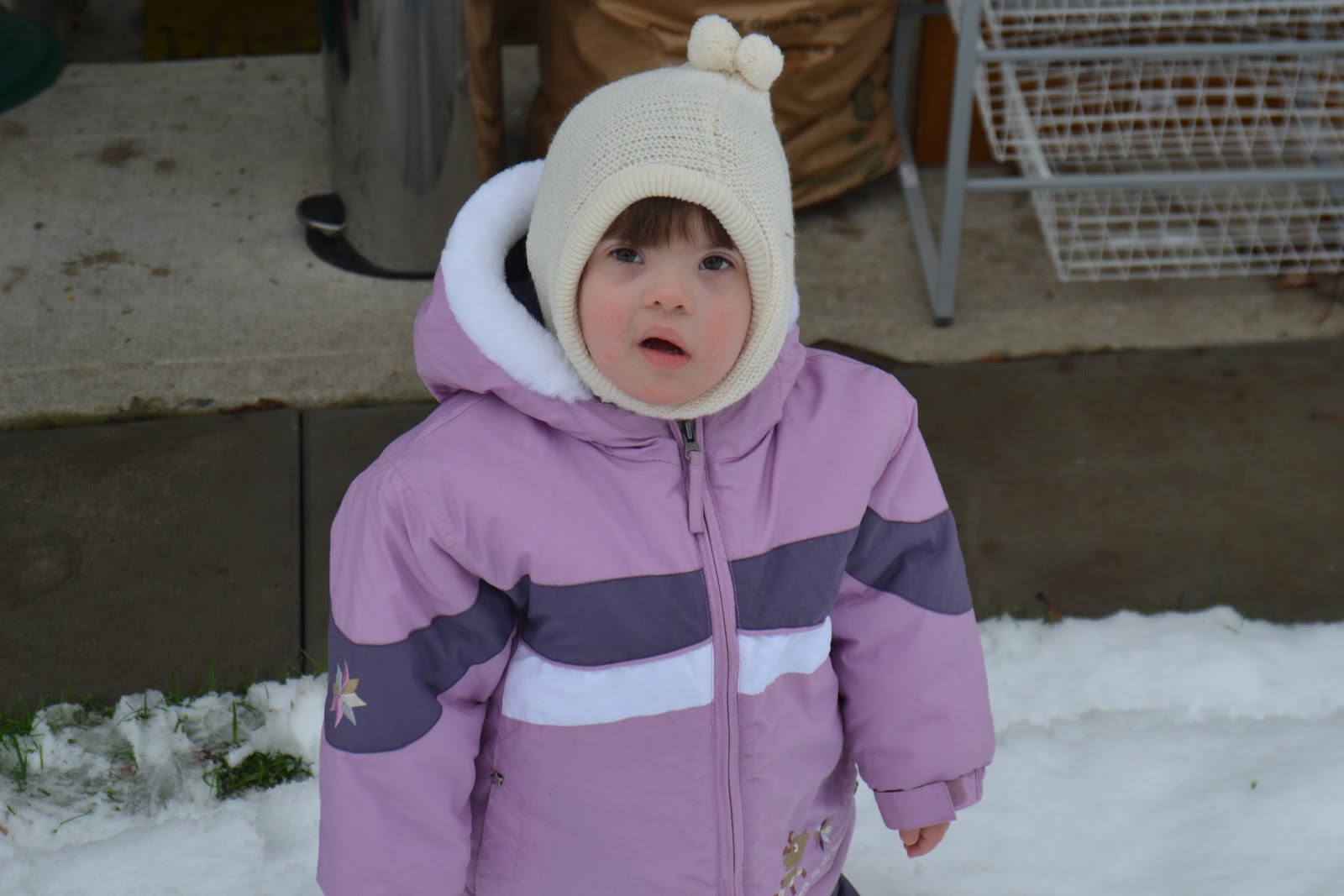 This past month Sofie had her first FAMILY Christmas! She was a little confused at times but went with the flow. She also had her first FAMILY vacation! We had a big family reunion in Mexico! Despite our worries that she would regress with her behaviors and eating patterns, she again blew down our expectations. Although she did revert to some of her old coping methods during travel, she progressed in other ways on the trip. She ate and drank wonderfully the whole week, enjoyed herself in the water and began saying “hi” much more consistently and clearer! Sofie started her music class again this past week. She was so excited! When she saw where we had pulled in to park she started screeching in her car seat! She did awesome her first class back. She has come such a long way and this class is such AMAZING therapy for her! She fully participated, did all the actions even though it was all new songs, moved her mouth in the shape of the words we where singing and has better rhythm than I do! Seriously. She is a dancer. You can’t help but smile when you watch her. She also had her first experience in snow just a few days ago. She did not think much of it. She did not like it to much but did tolerate standing in it and watching us build a snow man.