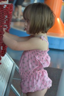 Now? Wow. She jumps in to new surroundings, unless there are tons of people, then she stays close to Mommy or Daddy, which is awesome by the way! She is fully attached to us, but still fearless. She doesn’t pull hair anymore although I am still watching for it. She still hits a lot but it is more behavioural than instinctive. She still throws a lot but not as much. She holds things now, examines them and plays with things! She has even lined her toys up in a row… which is huge! She doesn’t really play with other kids but she will play beside them and parallel play, which if I remember right is pretty on par for the 18 month developmental level I think she is at. She still doesn’t love grass and large groups but doesn’t let that stop her from exploring and doing what she wants.