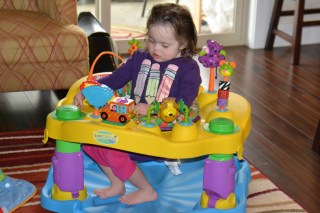 Sofie has regressed in her own way… she wants to do what the baby does, especially this past month it seems. She tries to get in the Exersaucer, wants to be held like a baby and has even tried to breast feed. All things that I’m actually enjoying since she never got that as a baby. Her language is taking off in spurts and she is amazing us with how much she is actually understanding, even though she can’t communicate completely. This lack of communication has become very frustrating to her and she breaks down crying frequently out of frustration. It is hard, but she is doing great! She can say little sentences now like “it broke” and “more eat please”. She has come such a long way in such a short amount of time!