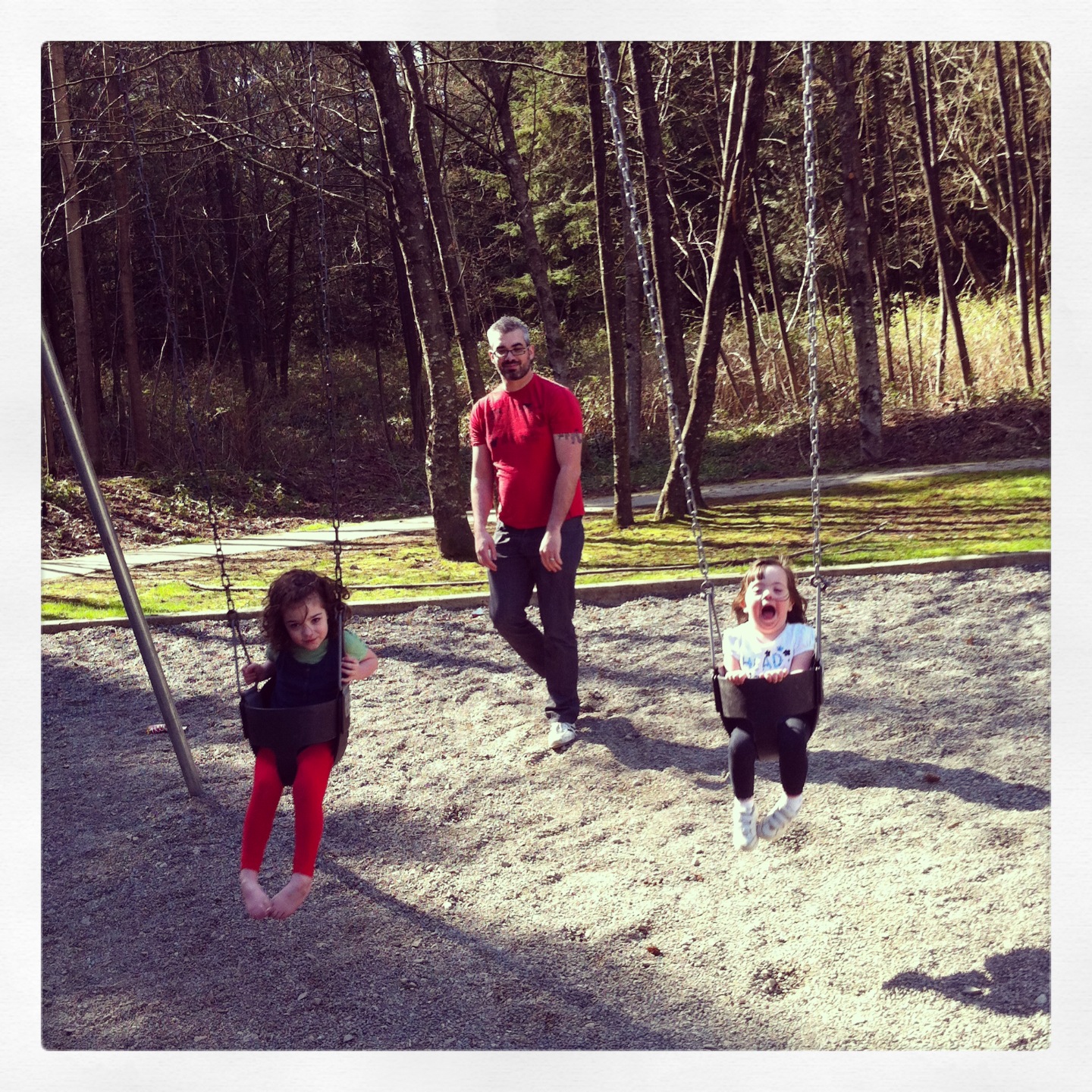 As for me, I’m enjoying life. Jon is really wonderful at letting me sleep in a little in the morning because I’m up in the night with Evie. I usually still need a nap but it sure helps! A luxury I won’t have when he is back to work. I’m loving this family time. We go to the park. We play with the kids a lot. We cook dinner together or take turns. We let each other have naps when they are needed. We let each other get out with out the kids when it is needed too. Granted being home together does illuminate some of our frustrations with each other a little more, like the fact that I always put the coffee cup he is using in with the dirty dishes even if he is still using it, but we deal with it, try to laugh and hopefully do better the next day.