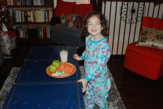 After a much to late church service, Livi was very careful to leave out cookies and milk for Santa and not forget apples and carrots for the reindeer.