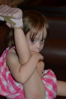 We’ve stayed in the hotel room this afternoon to try too contain the stimulation a bit for her. She is doing well other than the lack of sleeping, drinking, and pooping 🙂 She gives us lots of giggles! She is really starting to understand the signs for ‘more’ and ‘all done’ and uses them correctly when it suits her 🙂 She does throw a few tantrums but it is not any different from any other one year old… which is where I think she is basically is developmentally. She has been coming to us for comfort and even came to me today specifically to play and laugh with! She does do some self stimulating rocking thing on her back. It looks like it is a symptom for being bored at the institution. I’m not sure whether I should let her do this or stop it each time. It kind of depends on how I have been feeling, whether I let it go or not. All in all, we are really enjoying her, we just want to be at home in our own space, with both of our kids.