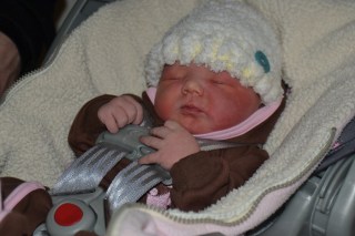 With her attached to my breast everyone had to wait their turn to hold her! Vanessa took pictures for us when she showed up so once I get those I’ll do a picture post 🙂 We did get about 6 pictures on our camera because Jon had the frame of mind to shoot a few just after Evie came out.